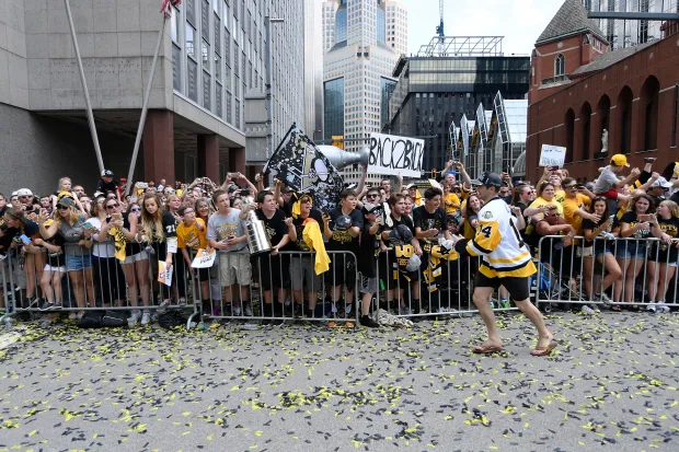 As thousands of fans lined the streets dressed in feathers, beak masks, and replica jerseys, the Bitch Pigeons rode through on championship floats blasting Foghat’s Slow Ride and tossing rubber rats to the crowd (a nod to last season’s playoff superstition).